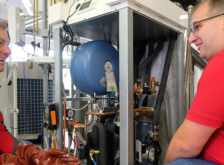 Schlagartig verändert sich die Atmosphäre im Raum. Alle sind konzentriert bei der Sache. Es werden die Inhalte der letzten Schulungen wiederholt, die Techniker tauschen ihre Erfahrungen aus und diskutieren Problemstellungen. Josef unterstützt, indem er sinnvolle Tipps gibt und dazu anregt, nicht nur auswendig gelernte Inhalte abzurufen, sondern sich immer wieder Problemlösungen selbst herzuleiten. Denn keine Wärmepumpe ist wie die andere. So vergehen die ersten beiden Stunden wie im Flug.