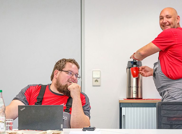 Um kurz vor halb neun treffen die ELCO Techniker ein. Sie sind aus ganz Deutschland angereist. Thorsten aus Neubrandenburg hat die weiteste Anreise hinter sich gebracht. Alle acht Kollegen verbindet die Leidenschaft angenehme Wärme in die Wohnzimmer des Landes zu bringen und die Tatsache, dass sie an dem heutigen Tag in eine lehrreiche Woche starten. Die Wiedersehensfreude ist groß, man kennt sich ja bereits aus den vorangegangenen vier Ausbildungsmodulen. Es wird gescherzt und gelacht. Ein Kaffee vertreibt die restliche Müdigkeit aus den Gliedern, bevor Josef pünktlich um 8:30 Uhr die Gruppe offiziell begrüßt und in die Schulungswoche startet.
