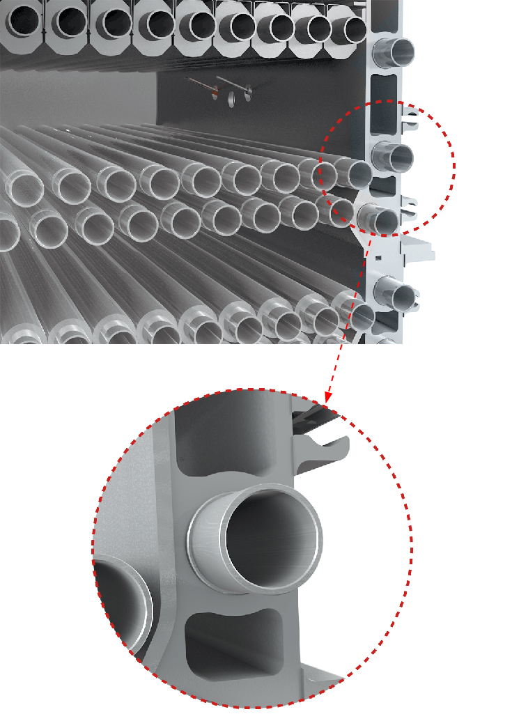 Durch das innovative Hydroformverfahren werden die Kühlrohre an den Seitenwänden so fixiert, dass sie höchstmögliche Wärmeleitfähigkeit bieten.